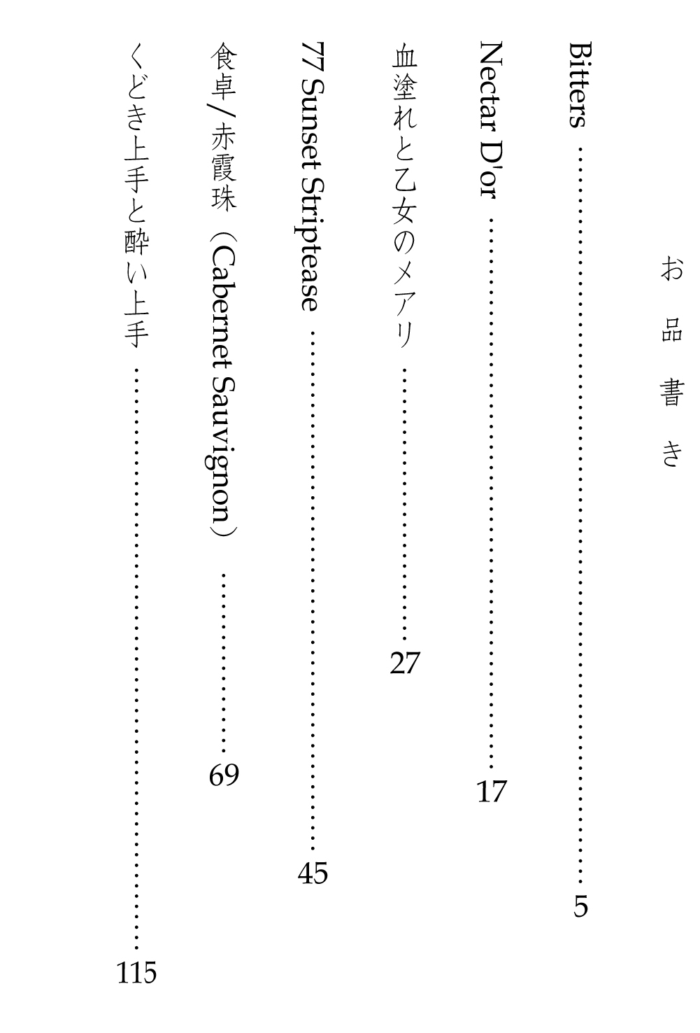 pixiv再録作品「Nectar D'or」「血塗れと乙女のメアリ」「77 Sunset Striptease」